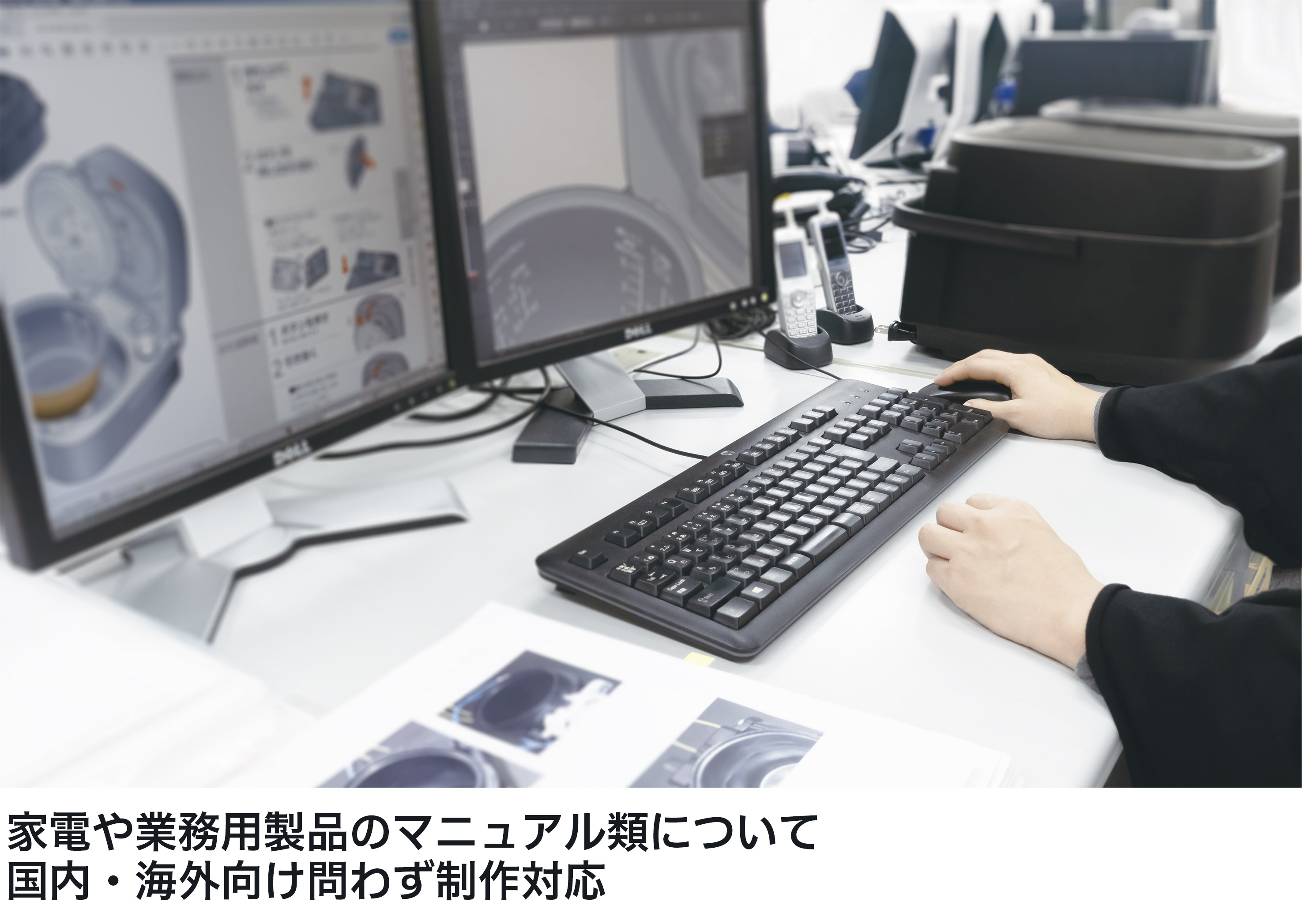 企画・改善提案、原稿作成、翻訳、イラスト作成、DTP、レイアウト、解説動画の制作、そして説明写真の撮影コーディネートを専門分野としながら、インハウスのクリエイティブ体制により、デザインやフォトレタッチ、Web等の多様なニーズに応えます。