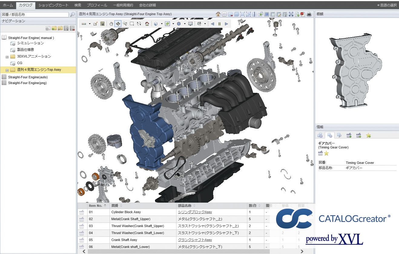 お手持ちの製品CADデータから自動的にXVLデータと呼ばれる3Dデータを生成し、部品リストと連携し、オンラインで閲覧・発注できるサービスパーツカタログを作成できるソリューションです。