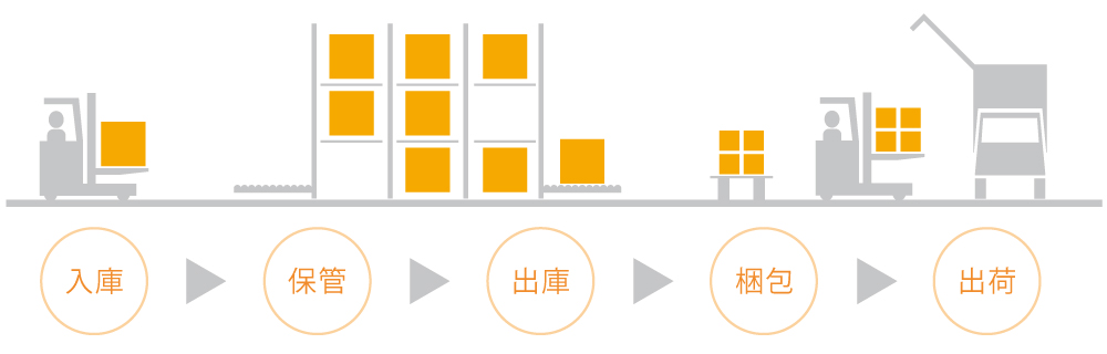 物流管理システムで作成された情報を自動倉庫に入力することで出庫が自動で行われていきます。次工程を考慮した順番で製品が出庫され、セット・包装、梱包作業工程に製品が運ばれます。