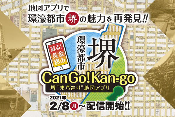1 月23 日(土)より配信予定の「堺“まち巡り” 地図アプリ」は、配信開始を2 月8 日(月)に変更いたします。